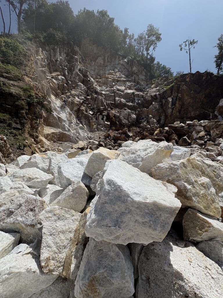 Es el componente principal de minerales como la calcita o el aragonito y de rocas carbonaticas como la caliza y sus variedades (travertino, creta, carniola) o el mármol, procedente del metamorfismo de calizas.
